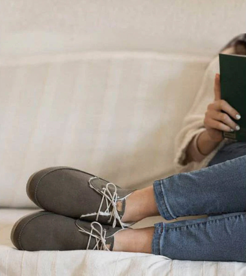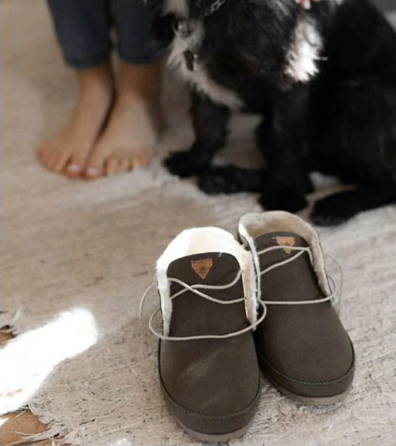 Die Innenseite ist mit Bio-Baumwolle mit Lammfellstruktur gefüttert, angenehm und warm für den Winter. Die Naturkautschuksohle ist sehr flexibel. In langsamem Tempo in Spanien hergestellt.