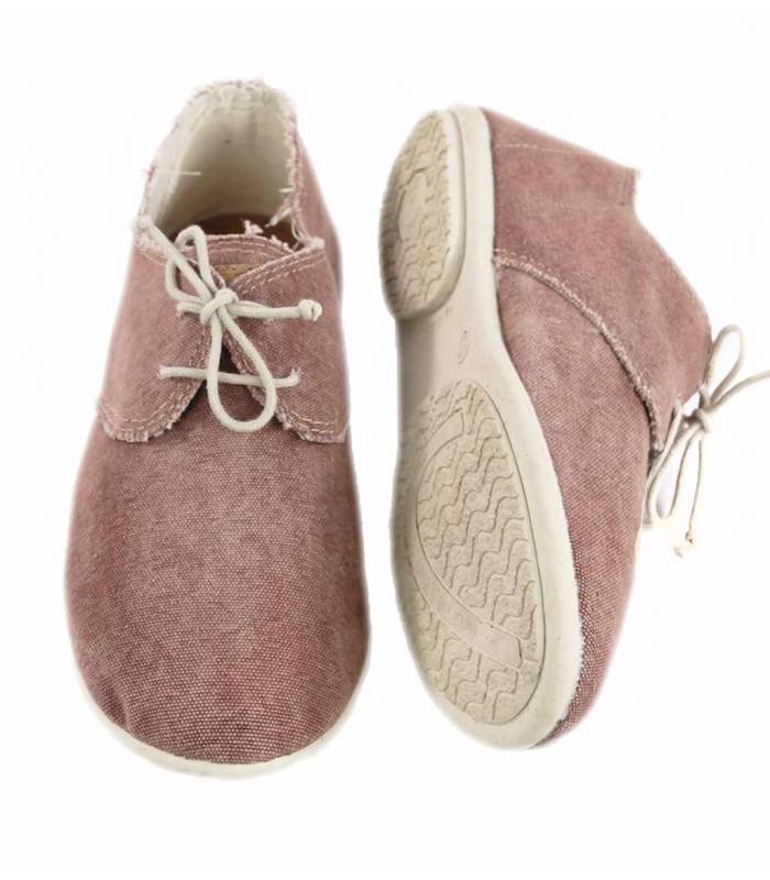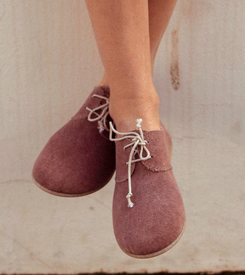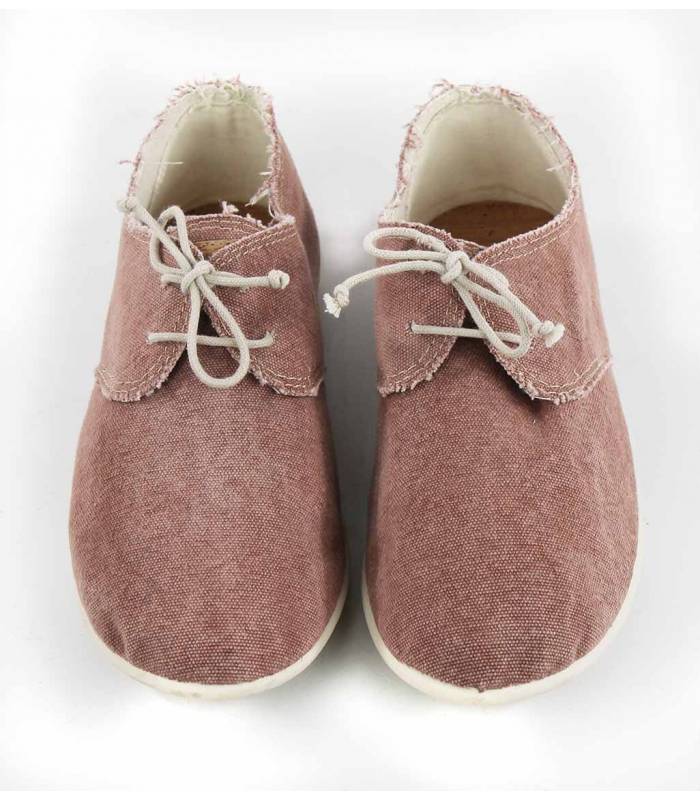 Die rosafarbenen veganen Pixie-Schnürschuhe sind aus natürlicher Baumwolle und innen mit Bio-Baumwolle gefüttert. Die Innensohle besteht aus Kork und die superflexible Sohle aus Naturkautschuk und recyceltem Gummi. Entworfen und hergestellt in Spanien in einem langsamen Tempo.