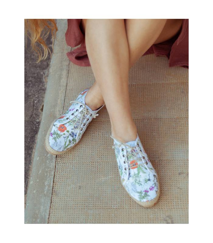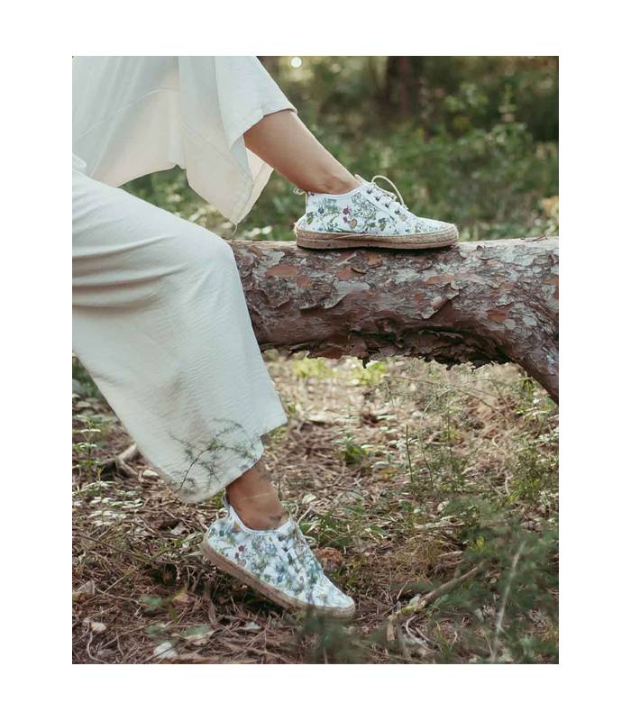 The Etes vegan sneakers are made with GOTS certified organic cotton fabric and made in a family workshop in Elche. The lining is made of organic cotton and the laces as well. The super-flexible sole is made of natural rubber and 20% of washed and shredded recycled shoes. Designed and made in Alicante at a slow pace.