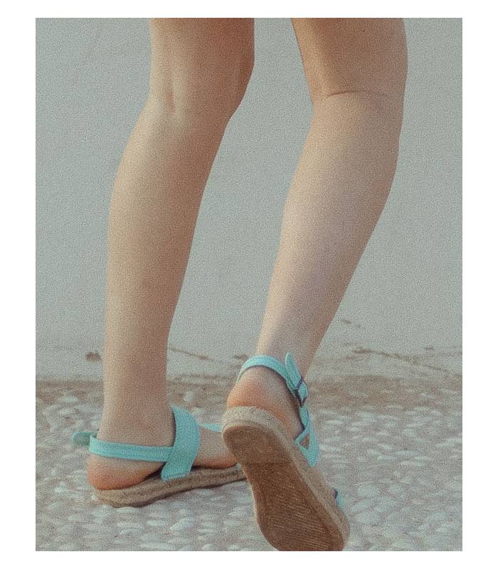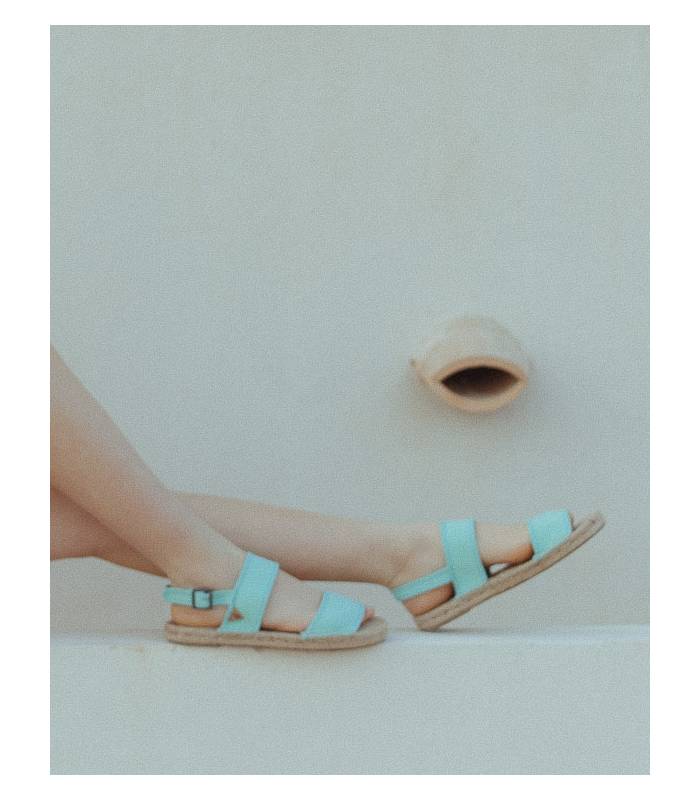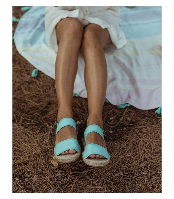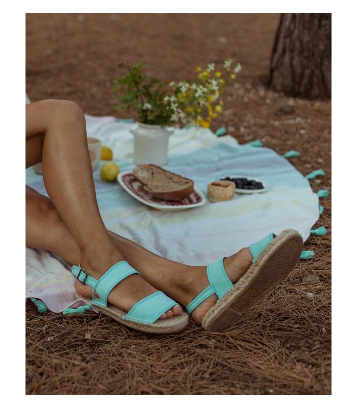 Sandalias planas veganas con hebilla. Tejido de algodón orgánico. Súper cómodas y muy combinables con tus looks de verano. Hechas a mano en España a ritmo slow. Orgánicas y veganas.