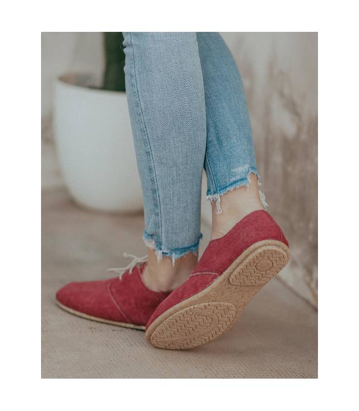 Los zapatos veganos Pixie con cordones están fabricados con algodón en el exterior y forro de algodón orgánico. La plantilla es de corcho y la suela superflexible es de caucho natural y reciclado. Diseñados y fabricados en España a ritmo lento.